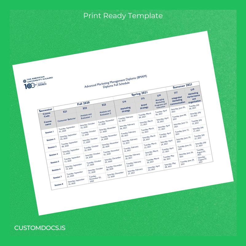 Download Egypt American University in Cairo Advanced Marketing Management Diploma Template – Word & PDF – Instant Digital File