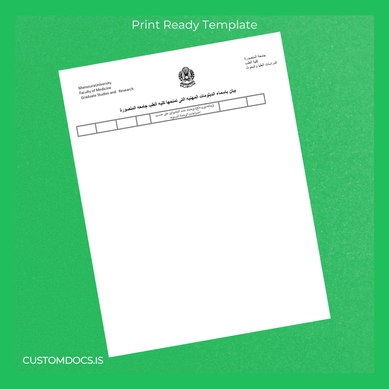 Be the first to review “Download Egypt Mansoura University Master of Science in Medicine Template – Word & PDF (Instant Access) 3 Page”