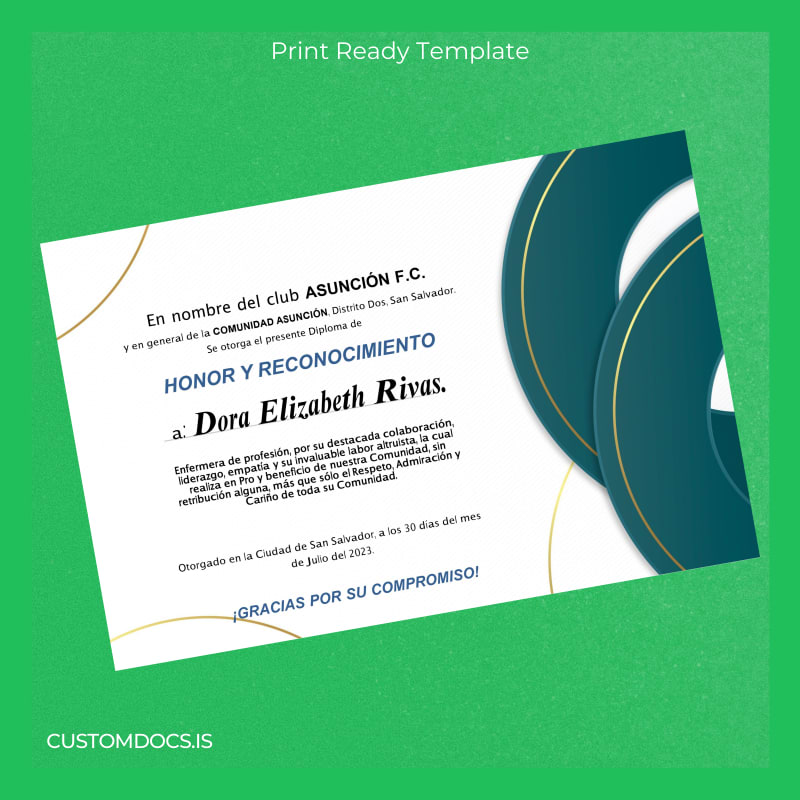 El Salvador Asuncion F.C. Honor and Recognition Diploma Template – Word & PDF