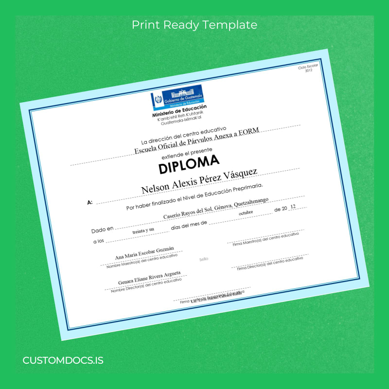 Download Guatemala Escuela Oficial de Párvulos Anexa a EORM Pre-Primary Education Diploma Template – Word & PDF – Instant Digital File
