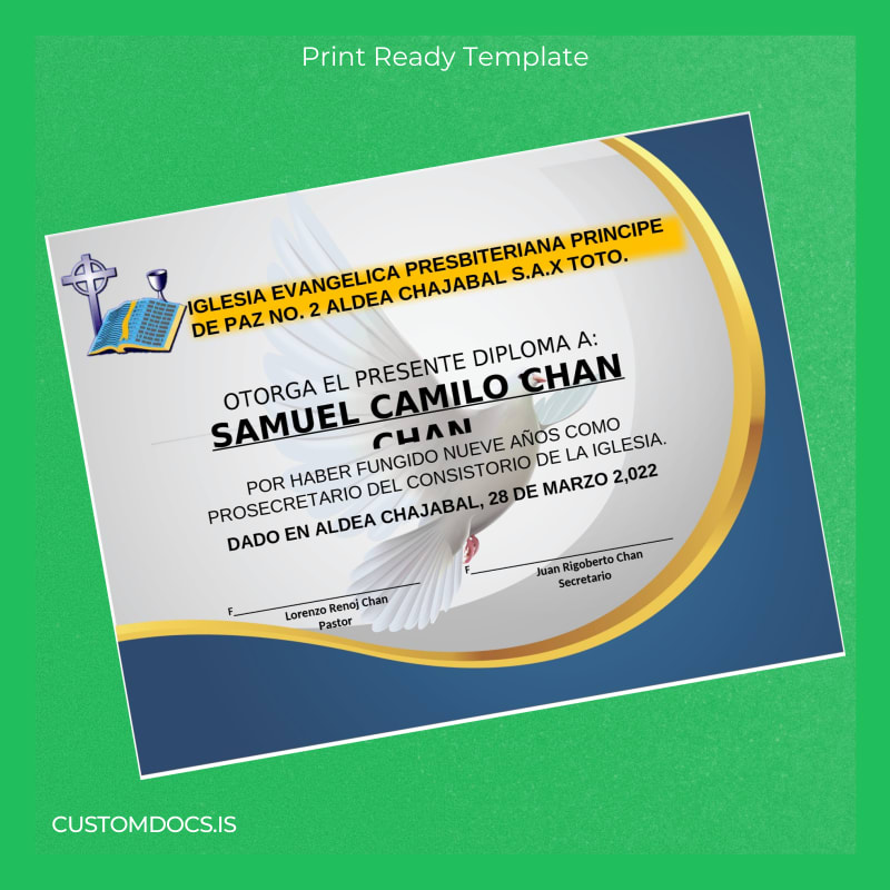 Download Guatemala Iglesia Evangélica Presbiteriana Príncipe de Paz No. 2 Diploma Template – Word & PDF (Instant Access)