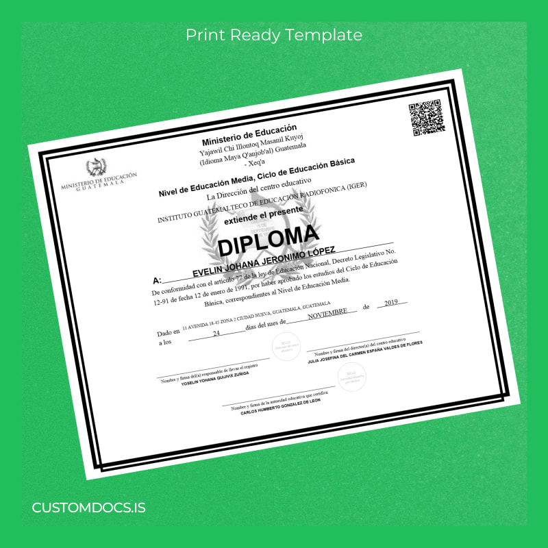 Download Guatemala Instituto Guatemalteco de Educación Radiofónica High School Diploma Template – Word & PDF – Instant Digital File