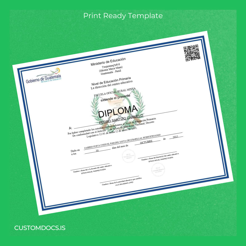 The Guatemala Instituto Nacional de Educación Básica de Telesecundaria Primary Education Diploma Template – Word & PDF offers a straightforward and professional alternative. This editable diploma template provides a fully customizable diploma form that enables you to swiftly recreate your diploma with precision and authenticity. Available instantly as a digital download, this template ensures you can edit all essentials including names, dates, and other key details directly within Word or PDF formats.