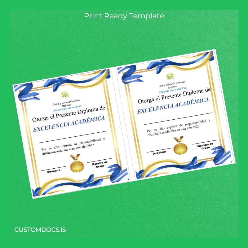 Introducing the Guatemala Jardín y Escuela Cristiano Reforma Academic Excellence Diploma Template – Word & PDF