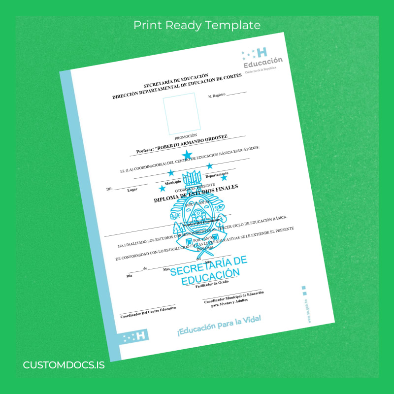 By empowering you with a readily editable and professional template, the Honduras Diploma de Basic Studies Template ensures you maintain your academic and career momentum without interruption.