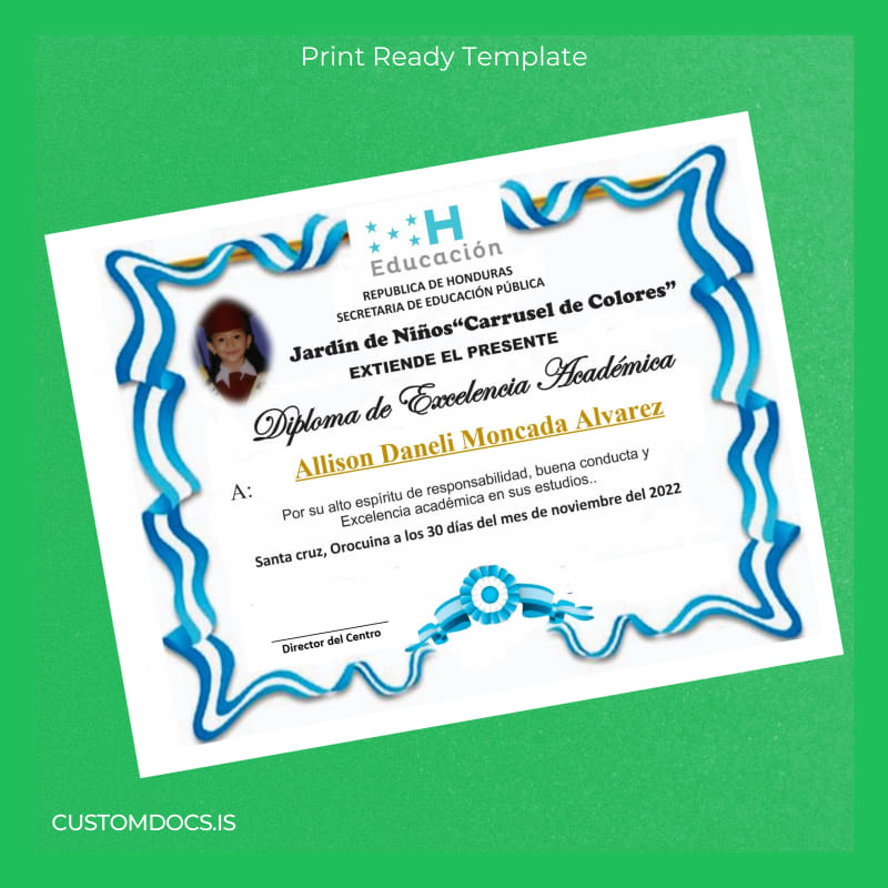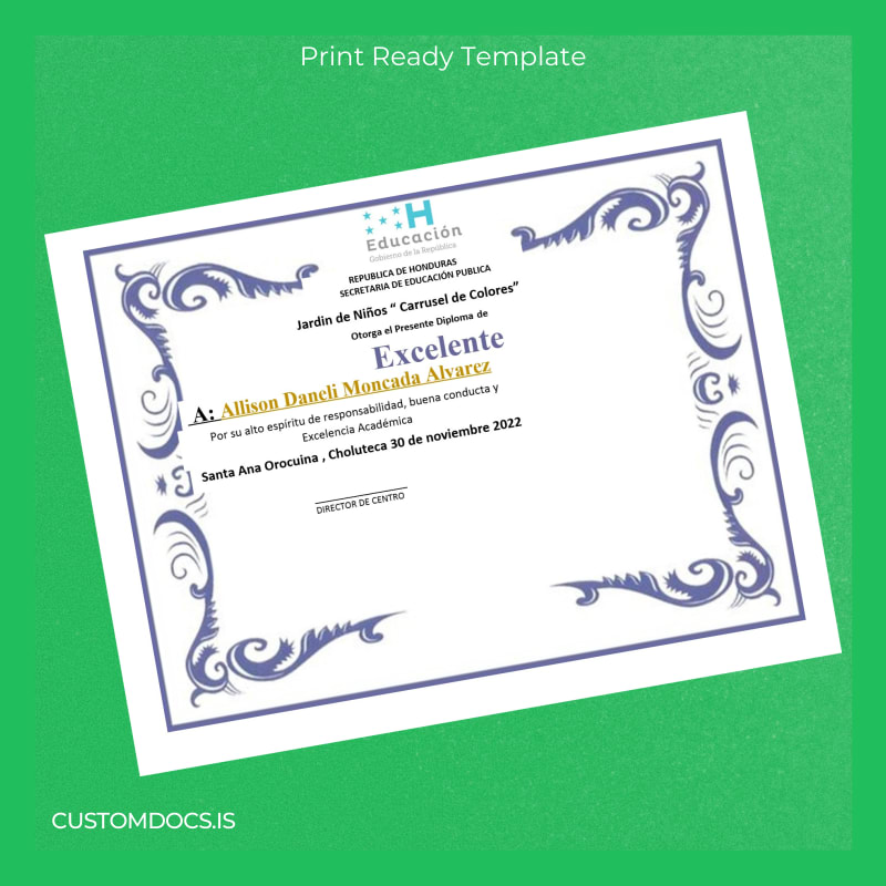 Fortunately, the Honduras Jardin de Niños _Carrusel de Colores_ Excellence Diploma Template – Word & PDF offers an immediate, editable, and professional solution to these challenges. This customizable diploma template allows you to easily create an authentic-looking replacement diploma without compromising on quality or design.