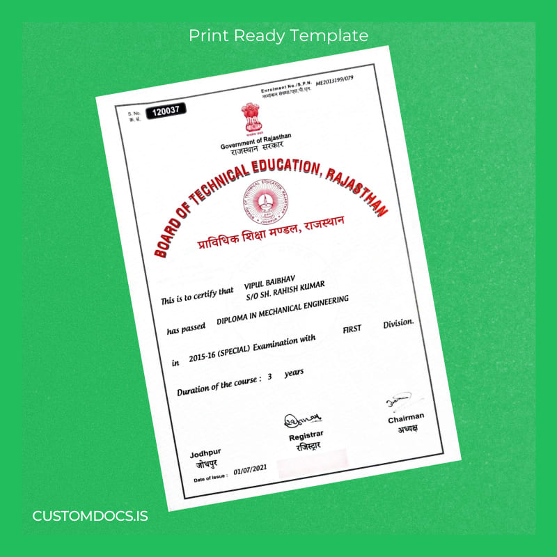 Download India Board of Technical Education Diploma Template – Word & PDF – Instant Digital File 2 Page