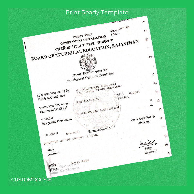 Your Reliable Solution: India Board of Technical Education Rajasthan Diploma in Electrical Engineering Template – Word & PDF