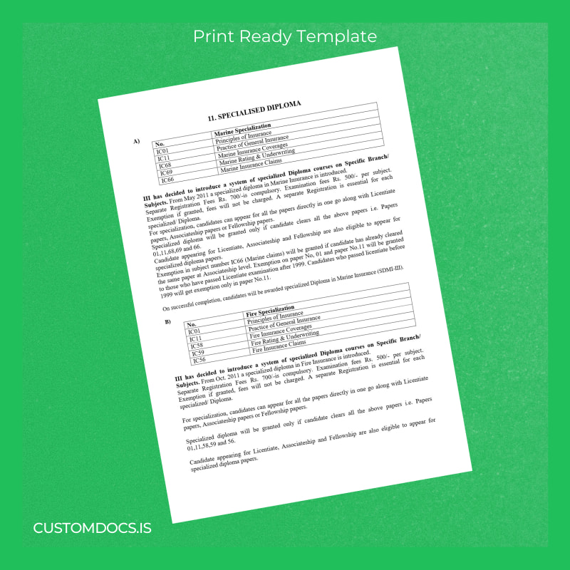 Forget the stress of unavailable documents and regain confidence in your professional credentials with an instantly accessible, editable, and printable India Institute of Insurance diploma template designed specifically for marine insurance teams.