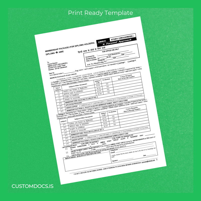 Your Editable Solution: India Institution of Engineers AMIE Diploma Package Template – Word & PDF