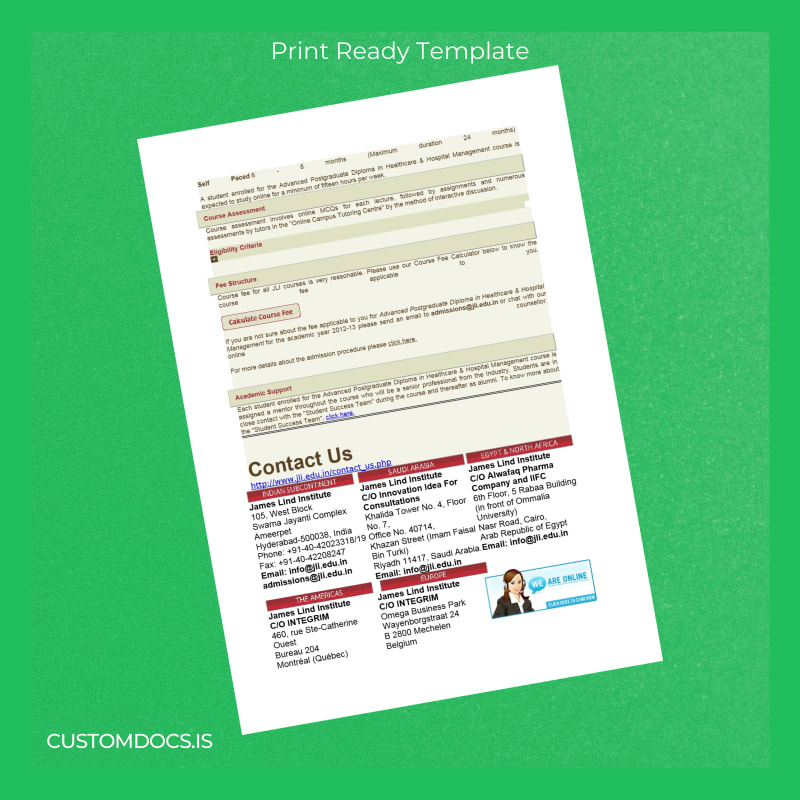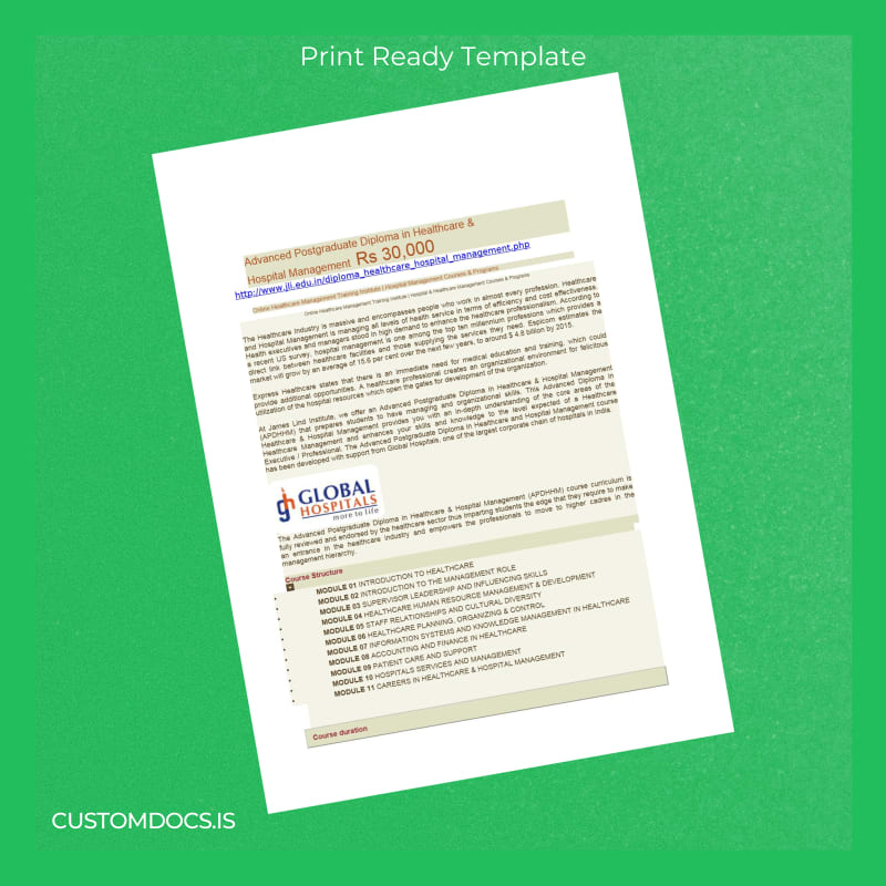 Download India James Lind Institute Advanced Postgraduate Diploma in Healthcare Management Template – Word & PDF – Instant Digital File 3 Page
