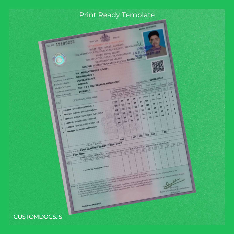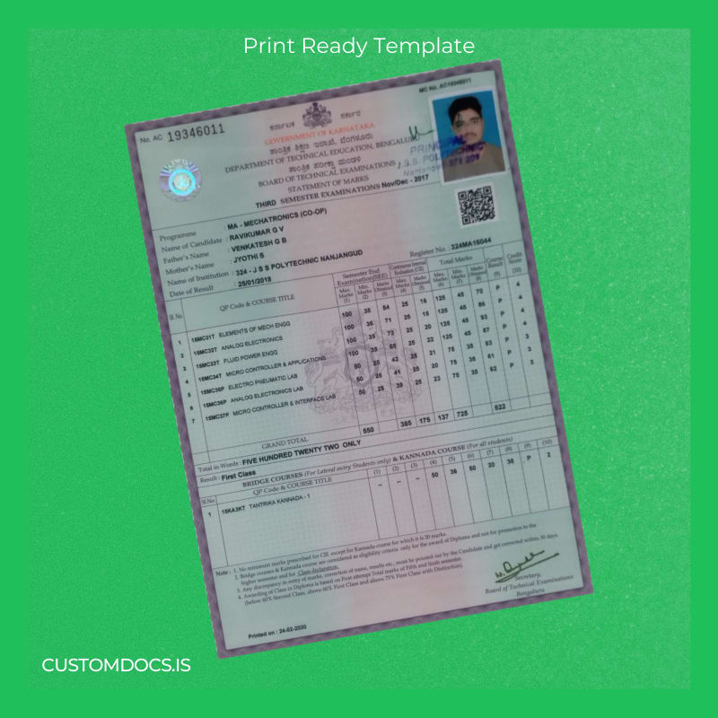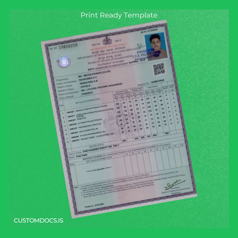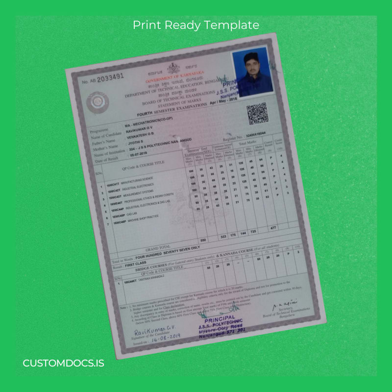 - Designed specifically to match the official India JSS Polytechnic Nanjangud diploma style for authenticity.