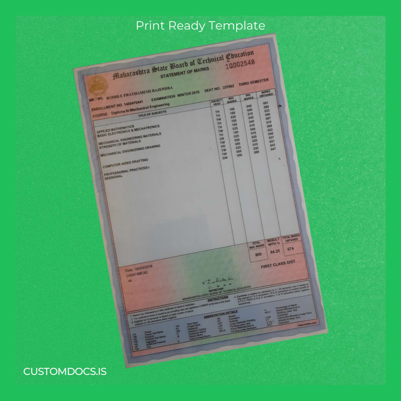 Download India Maharashtra State Board Diploma in Mechanical Engineering Certificate Template – Instant Digital File