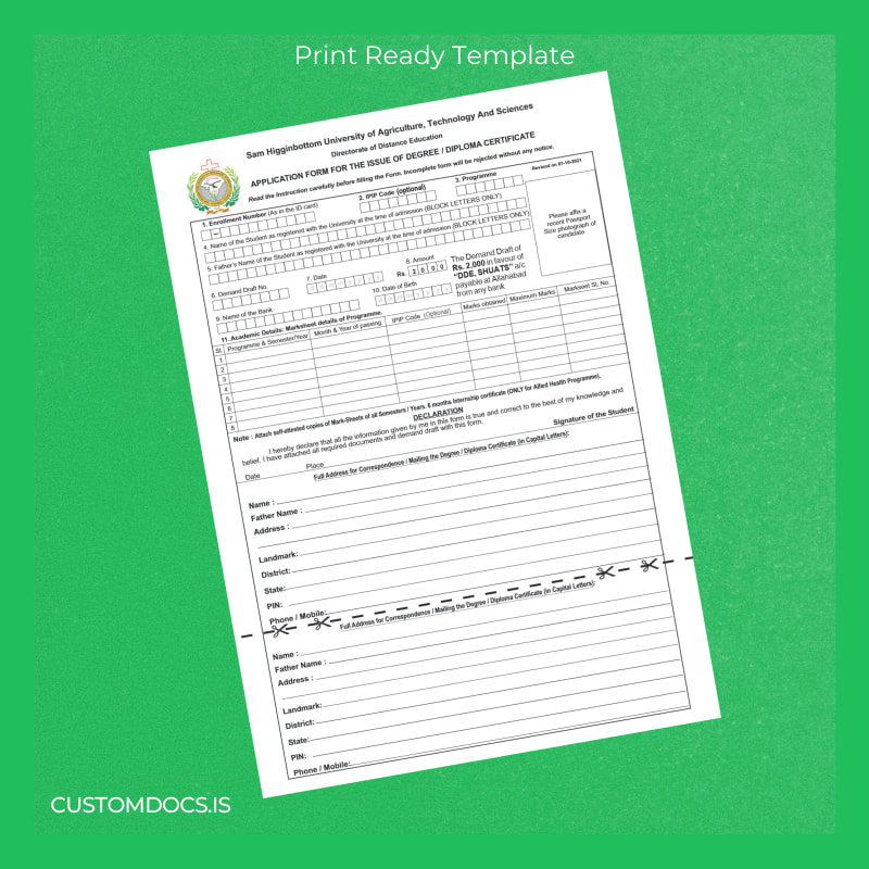 The India Sam Higginbottom University of Agriculture Technology and Sciences Degree Diploma Certificate Template – Word & PDF is designed specifically to resolve these challenges swiftly and professionally. As an editable and customizable diploma template, it allows you to recreate your certificate instantly with accurate details and authentic design features.