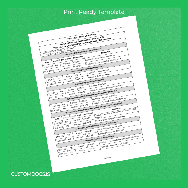 Professional India Tamil Nadu Open University Vocational Diploma Template – Word & PDF
