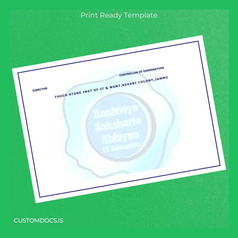 The India Touch Stone Institute of IT & Management National Computer Literacy Diploma Template – Word & PDF offers a fully editable, print-ready, and highly customizable diploma design that meets your urgent needs. Crafted to resemble the official diploma, this template allows you to personalize your document effortlessly using familiar software. This digital diploma download is perfect for professionals seeking a swift and professional diploma replacement.