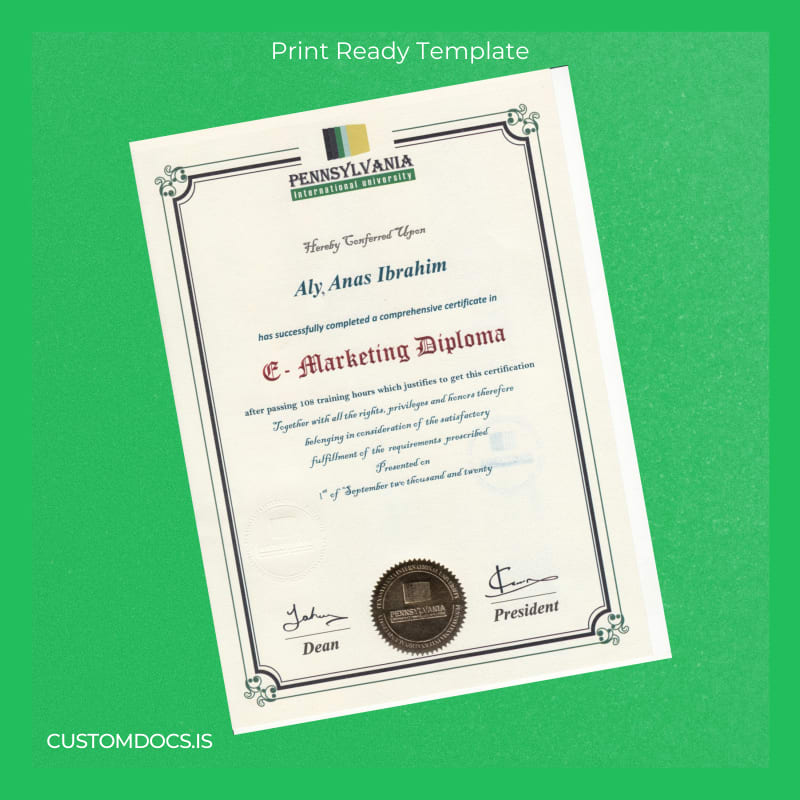 The International University E-Marketing Diploma Template – Word & PDF is your fast, editable, and print-ready solution to these challenges. Designed for professionals who require a polished and authentic-looking diploma in no time, this customizable diploma design allows complete flexibility and ease of use.