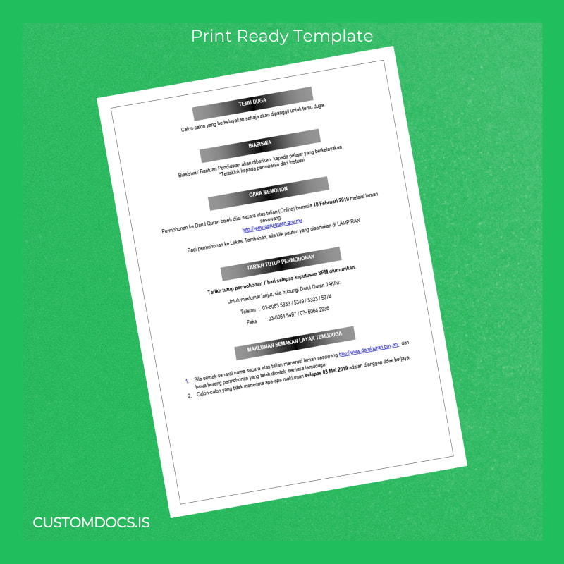 - Designed specifically to mirror authentic Malaysia Darul Quran JAKIM diploma aesthetics