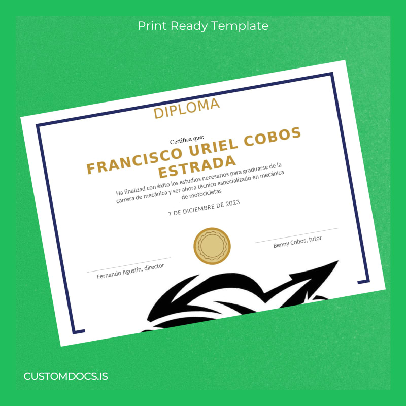 Whether you are a professional who needs a prompt replacement diploma or a printing service looking to offer customizable certificate options, this Mexico Diploma in Motorcycle Mechanics Template is your practical and reliable resource. Avoid administrative delays and elevate your professional documentation with our accurate and editable digital download.