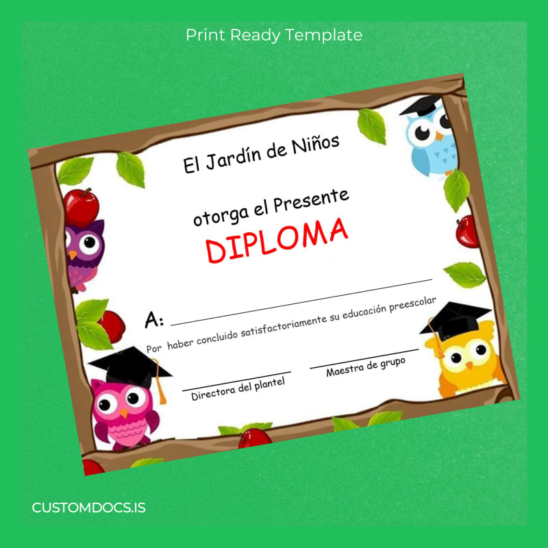 Download Mexico El Jardín de Niños Preescolar Diploma Template – Word & PDF (Instant Access)