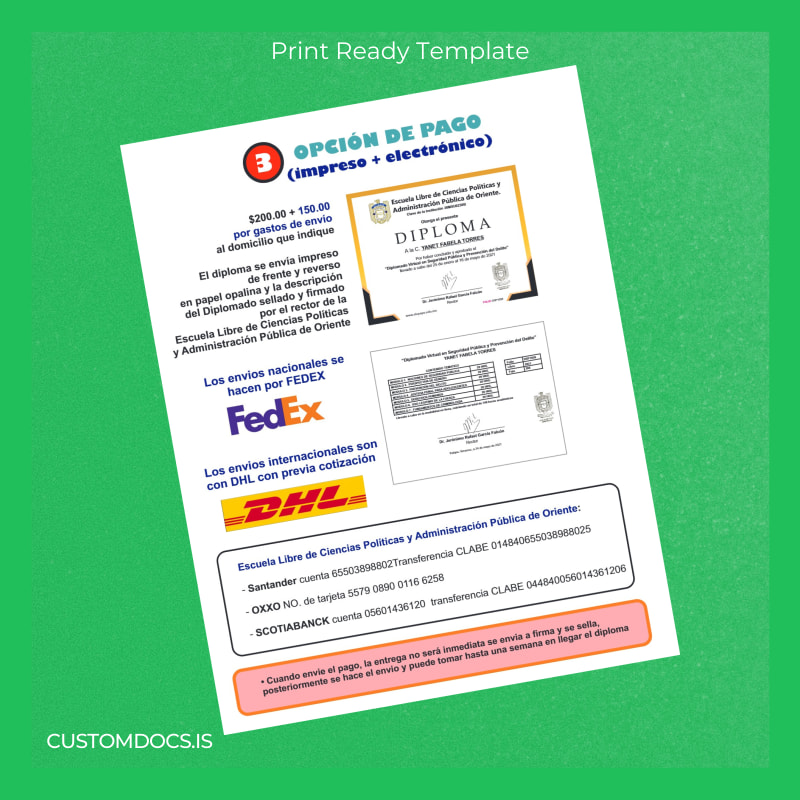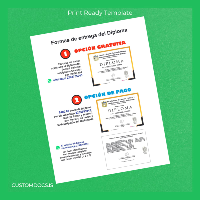 Download Mexico Escuela Libre de Ciencias Políticas y Administración Pública de Oriente Diploma in Virtual Public Security and Crime Prevention Template – Word & PDF – Instant Digital File 2 Page