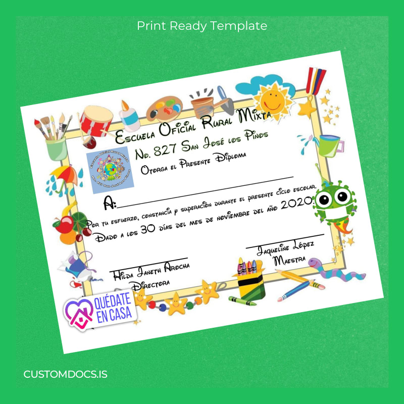 Download Mexico Escuela Oficial Rural Mixta Diploma Template – Word & PDF (Instant Access)