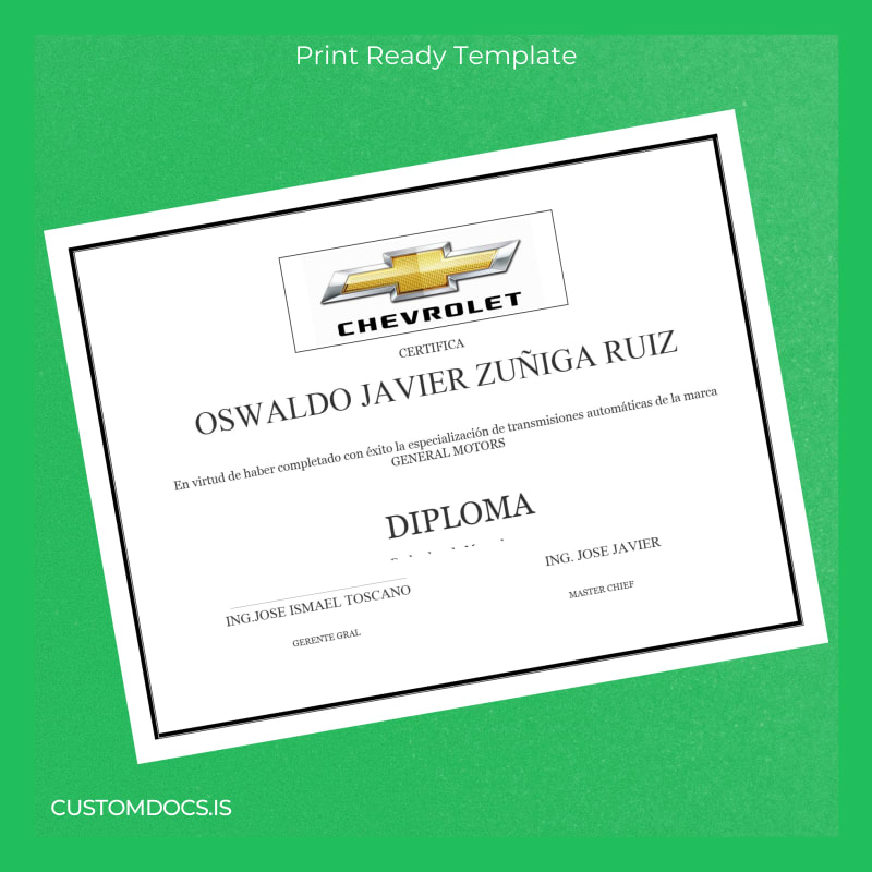 Facing the stress of a lost or damaged diploma can quickly become overwhelming. Without a replacement, professional setbacks or complications with official verifications might cause significant delay. The waiting times at official channels often mean missed deadlines and bureaucratic hurdles. This is where the Mexico General Motors Diploma in Automatic Transmissions Template offers an essential solution.