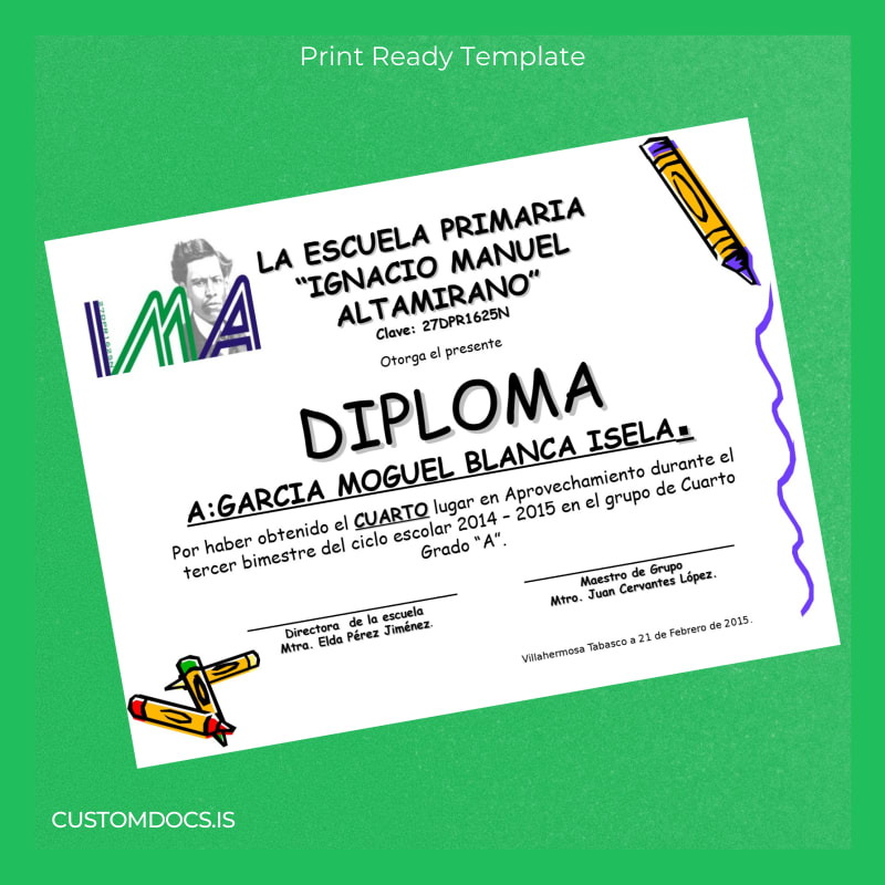 Download Mexico Ignacio Manuel Altamirano Primary School Diploma Template – Word & PDF – Instant Digital File