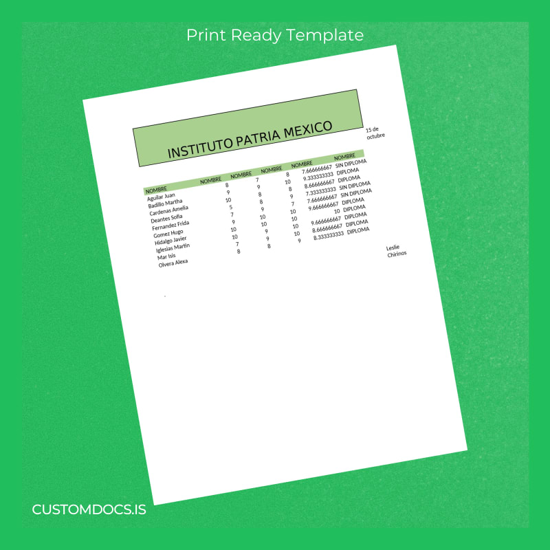 Download Mexico Instituto Patria Student Grades Diploma Template – Word & PDF – Instant Digital File