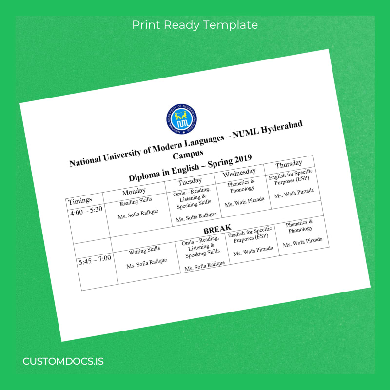 Download Pakistan National University of Modern Languages Diploma in English Template – Word & PDF – Instant Digital File