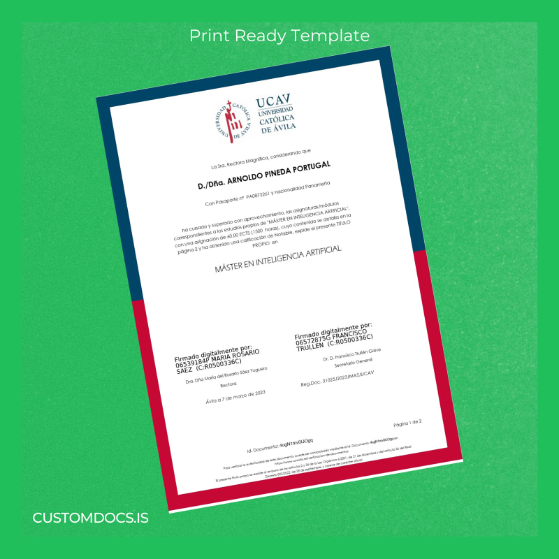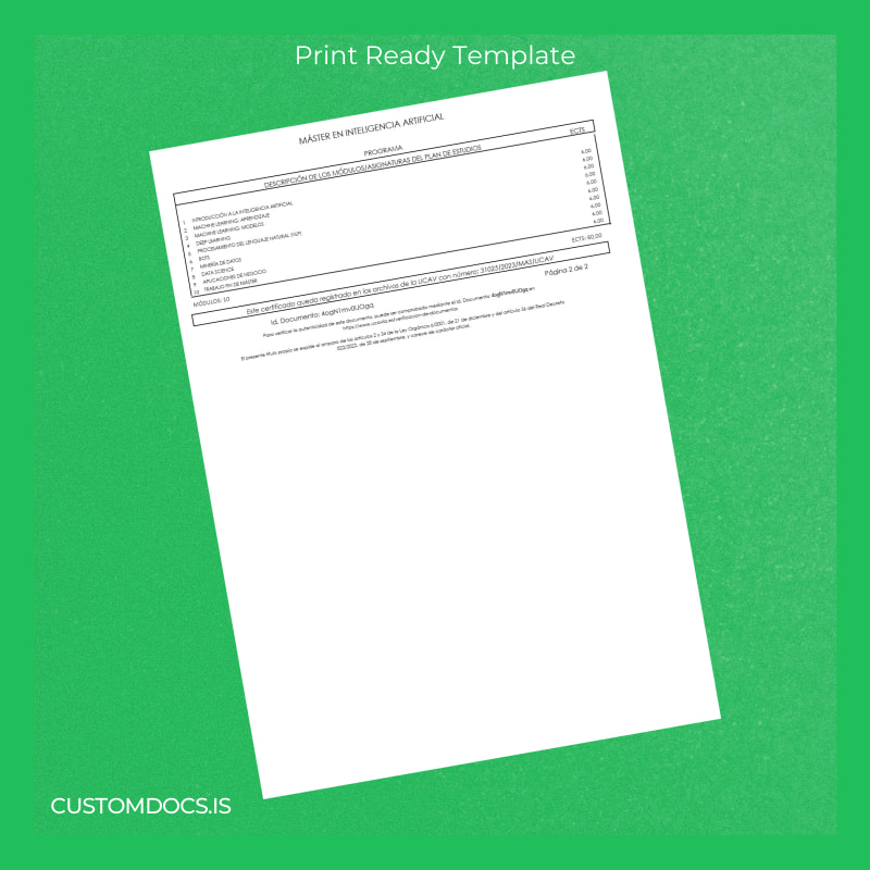 Download Panama University of Ávila Master in Artificial Intelligence Template – Word & PDF – Instant Digital File 2 Page