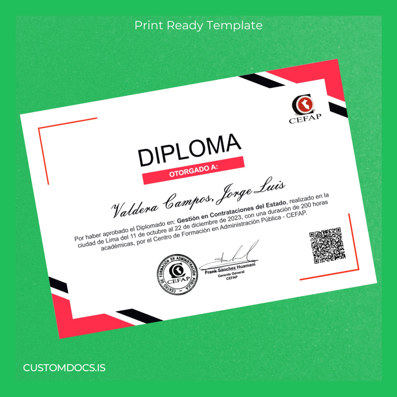 Your Instant Solution: Peru Centro de Formación en Administración Pública Diploma in State Contract Management Template – Word & PDF