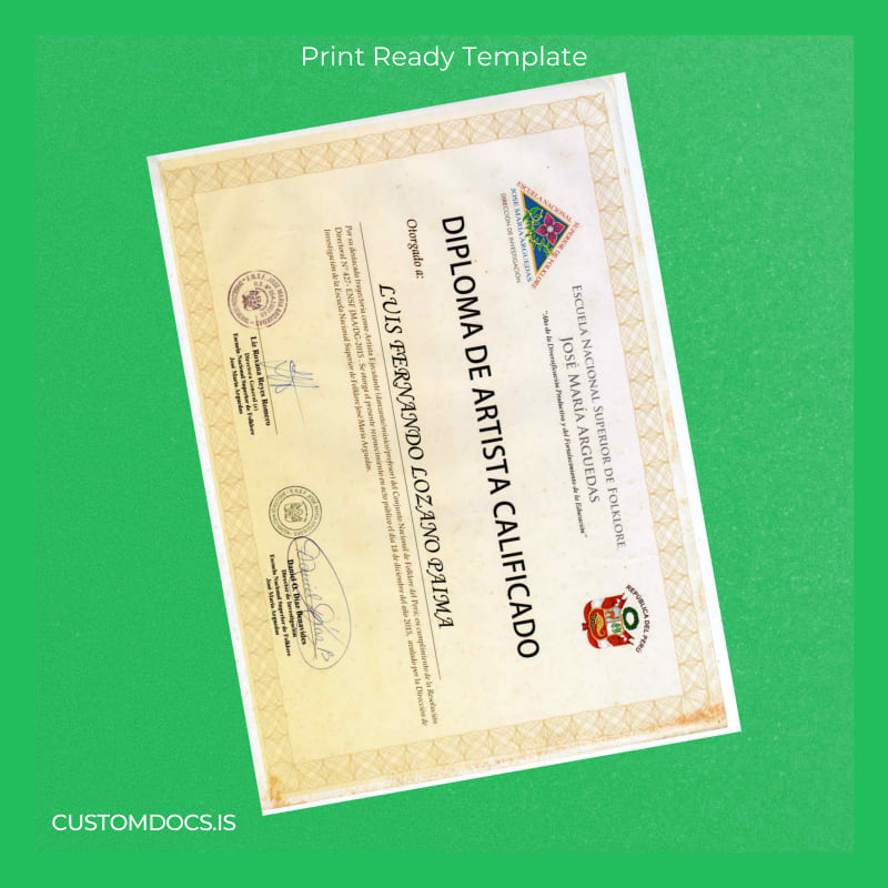 Losing an important diploma or needing a quick replacement can cause stress and disrupt your professional progress. Delays in obtaining official documents may lead to missed deadlines and bureaucratic hurdles that hinder your career advancement. The Peru Escuela Nacional Superior de Folklore José María Arguedas Diploma of Qualified Artist Template – Word & PDF offers an immediate and practical solution to these challenges.