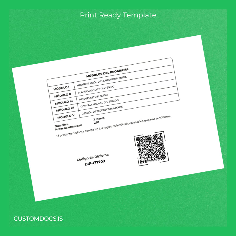 Fortunately, the customizable degree template market offers a seamless solution with the Peru INEC Diploma in Public Management Template – Word & PDF. This editable diploma template provides a fully modifiable and print-ready format designed to replicate the authentic appearance of your original document quickly and professionally.