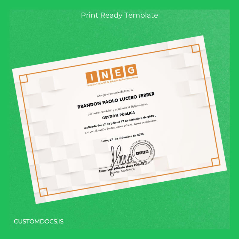Instant Access to Your Editable Peru INEC Diploma Template