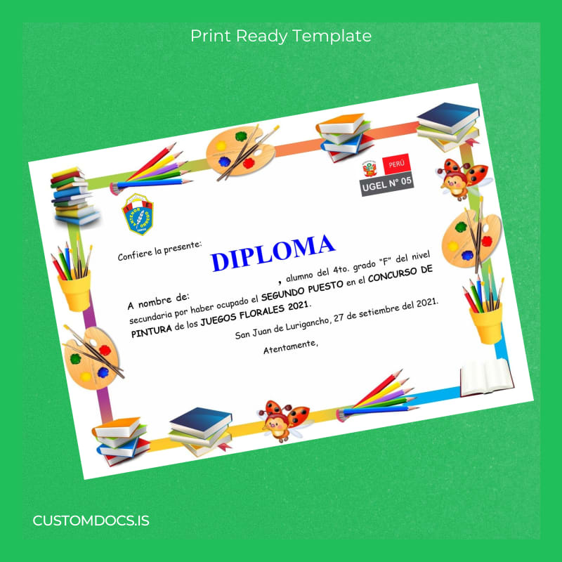 Simplify the Process with the Peru UGEL N° 05 Honor Diploma Template – Word & PDF