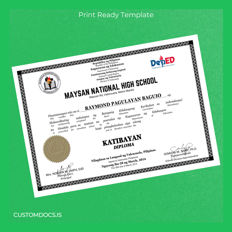 Download Philippines Maysan National High School High School Diploma Template – Word & PDF (Instant Access)