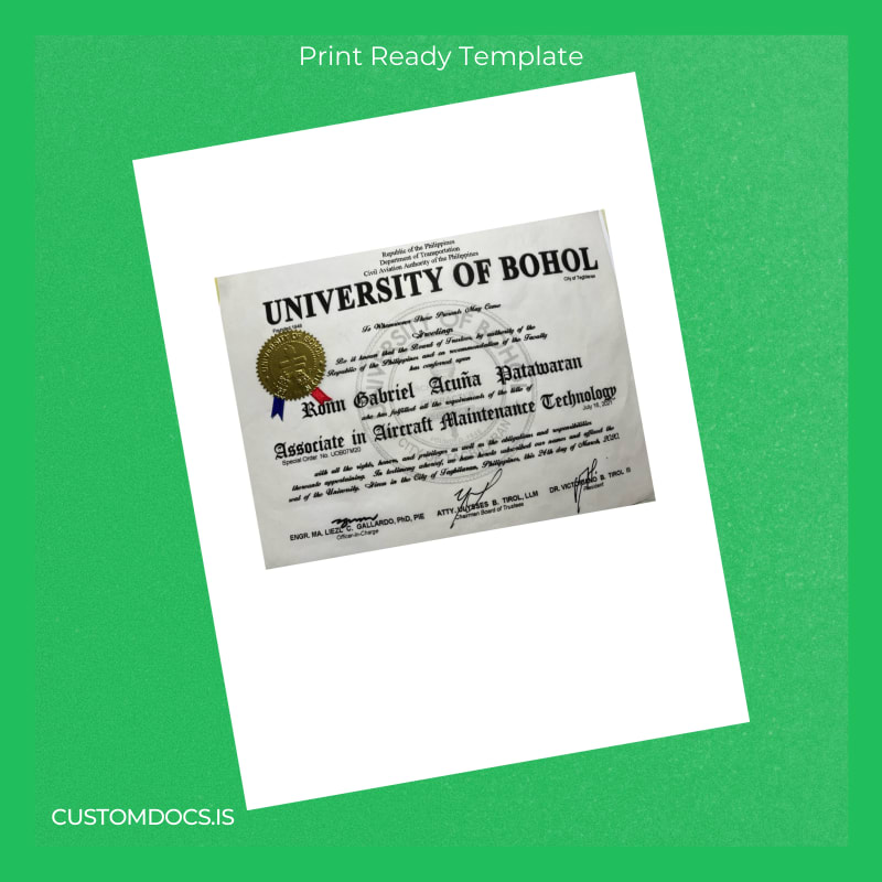 Finding yourself without a crucial diploma or needing a quick replacement for your Associate in Aircraft Maintenance Technology degree from the Philippines University of Bohol can cause serious stress and delays. Whether due to loss, damage, or urgent documentation needs, the challenge of obtaining an official diploma can disrupt career plans and professional growth.