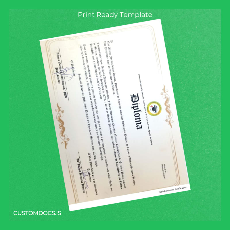 - Designed to perfectly replicate the original Portugal Instituto Superior Politécnico Privado do Luena diploma style with precise attention to detail.