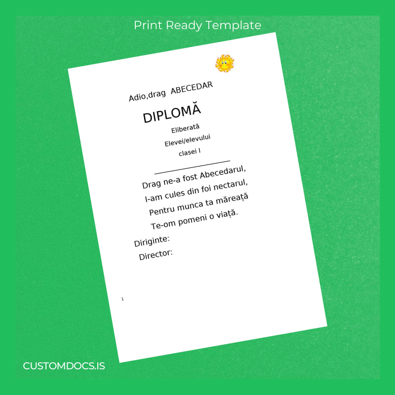 The Romania Abecedar Class I Diploma Template – Word & PDF Is Your Solution