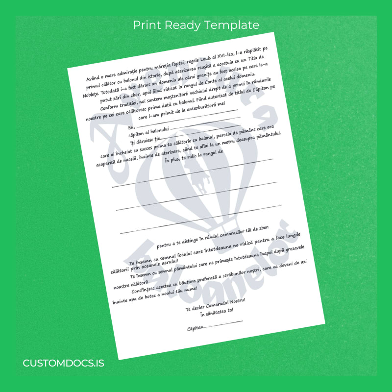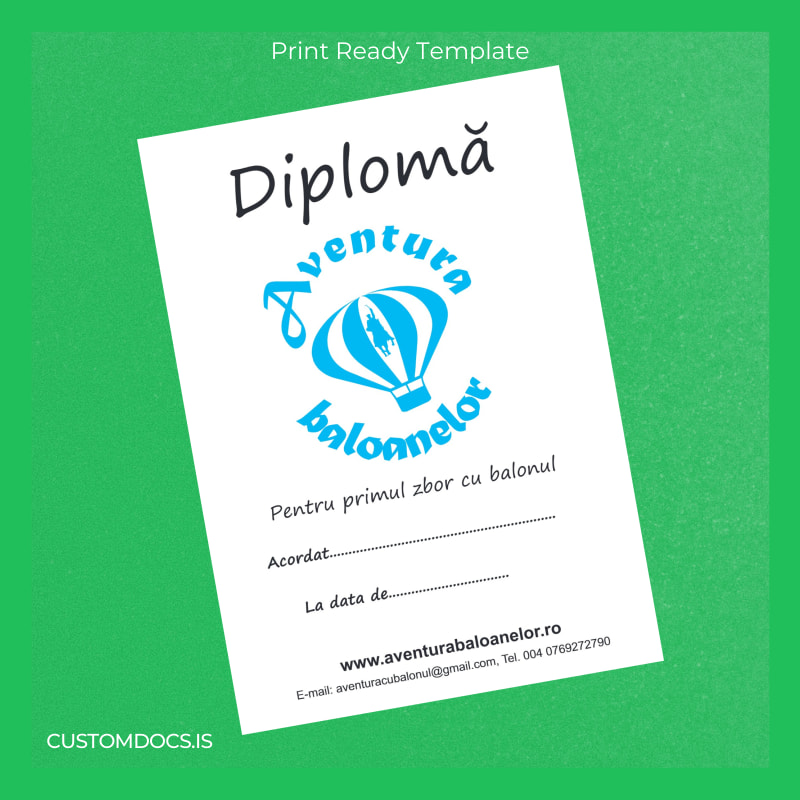 Instant, Editable Romania Aventura Balonelor Diploma Template