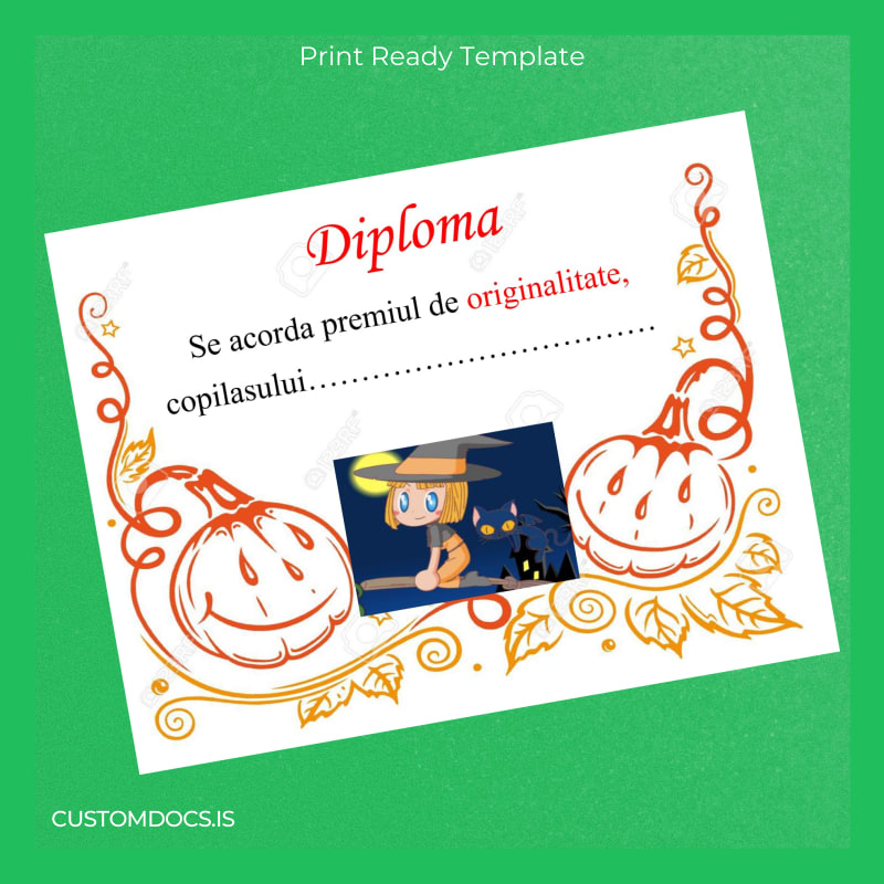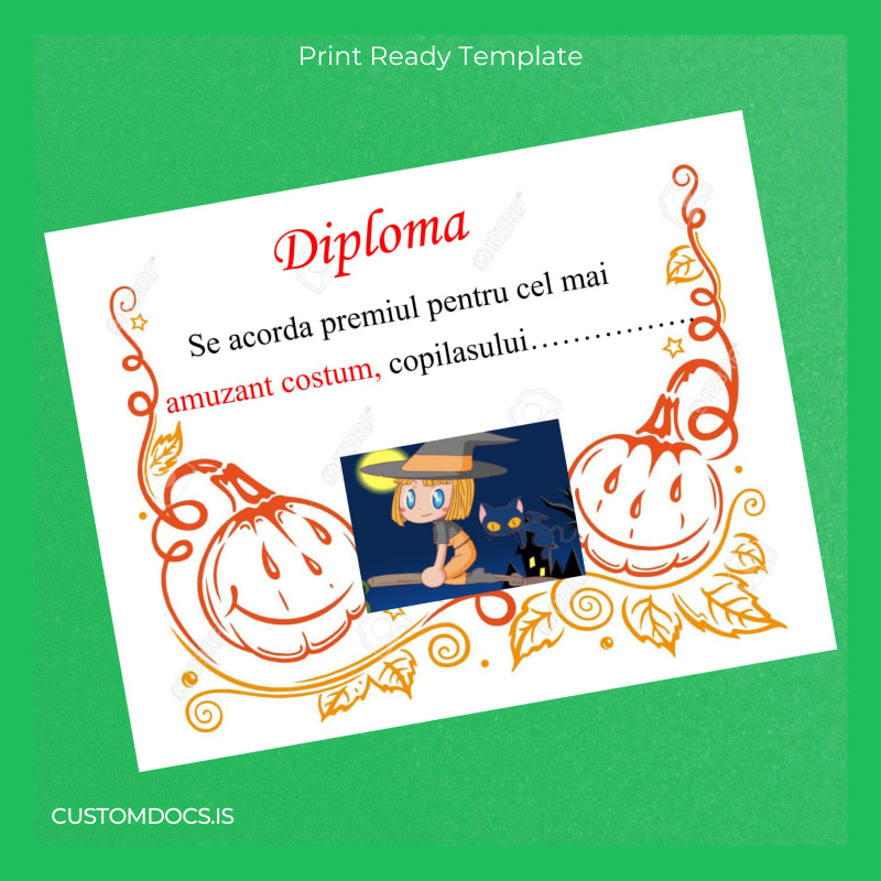 Download Romania Diploma Halloween Certificate Template – Word & PDF – Instant Digital File 2 Page