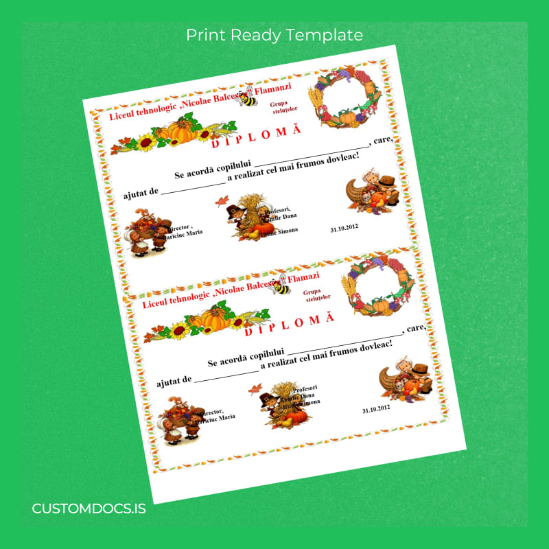 Seamless Editing with the Romania Liceul Tehnologic Nicolae Balcescu Flamazi Diploma Template
