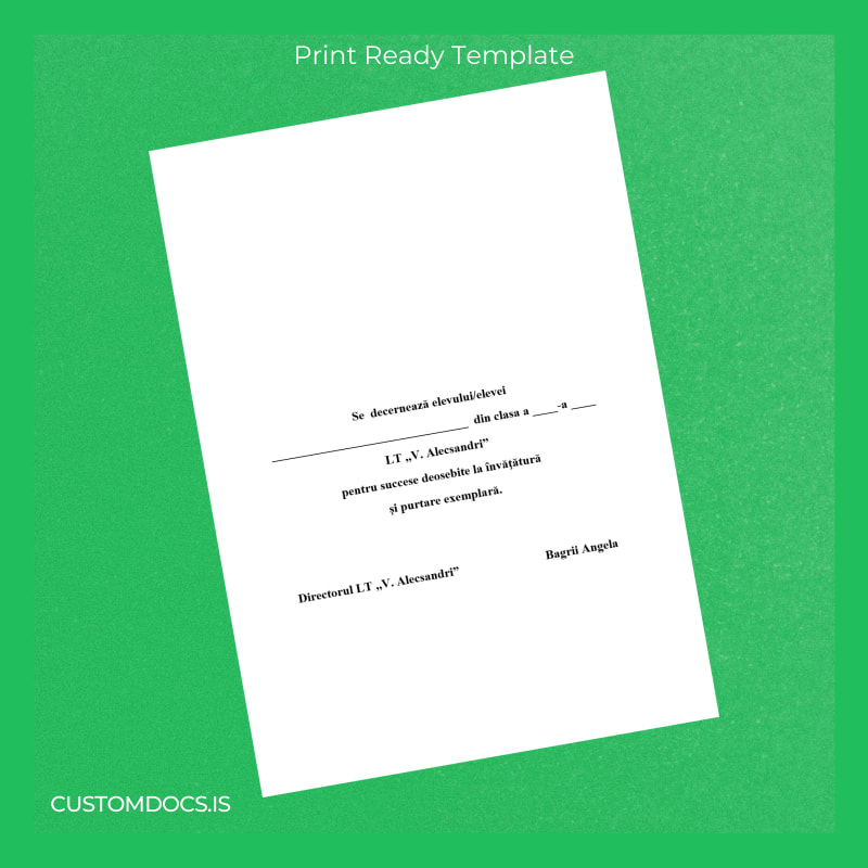 Download Romania LT _V. Alecsandri_ Diploma Template – Word & PDF (Instant Access) 3 Page