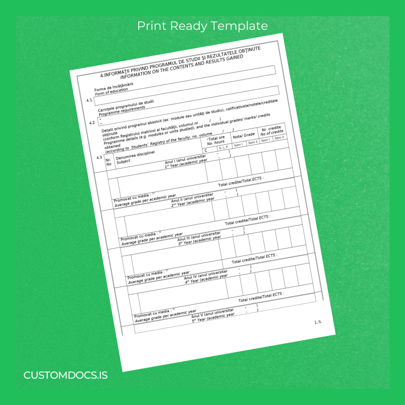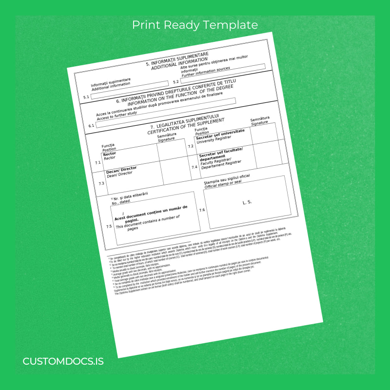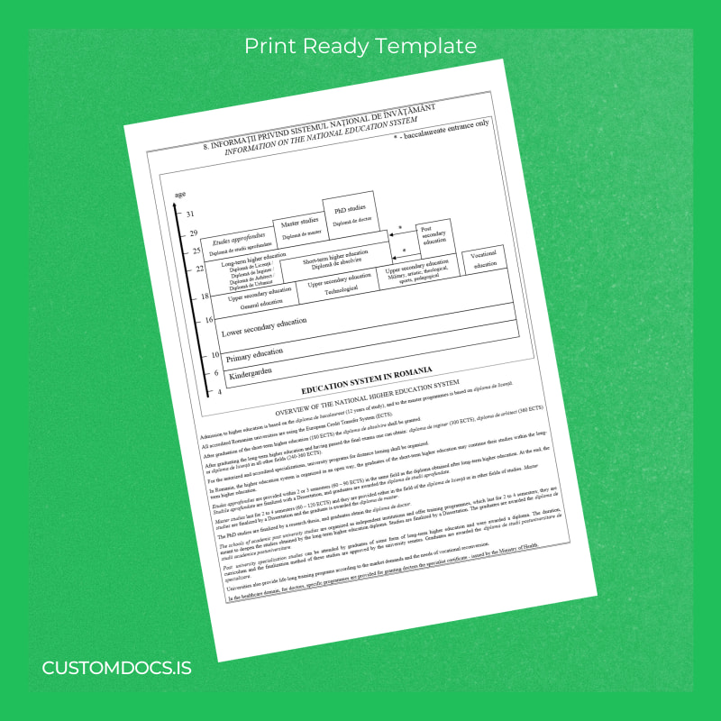 Instant Access to Your Romania University Diploma Supplement Template – Word & PDF