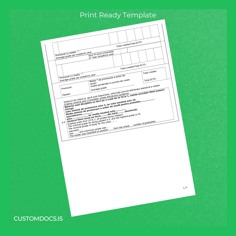 Don’t let lost diplomas or document delays hinder your progress. The Romania University Diploma Supplement Template – Word & PDF provides a practical, digital, and fast alternative designed to meet your urgent diploma needs while maintaining professional quality and authenticity.