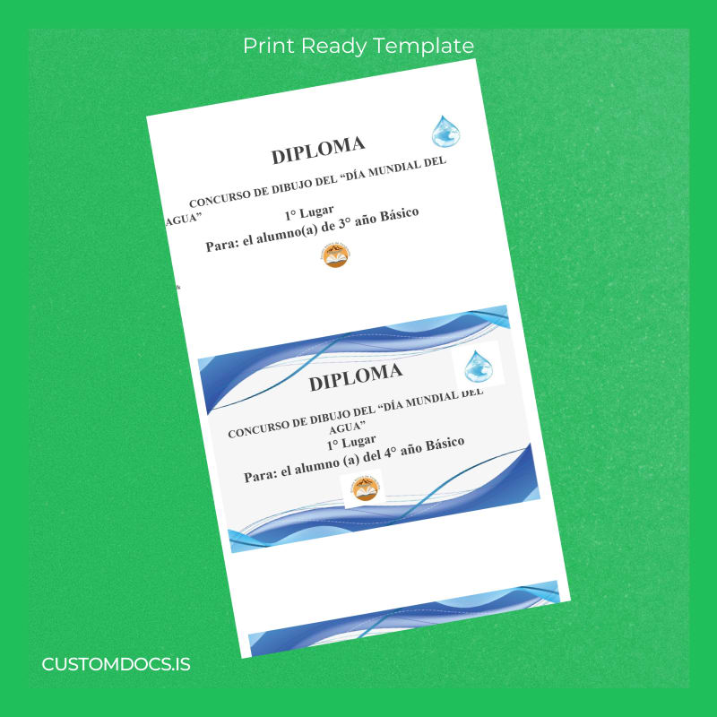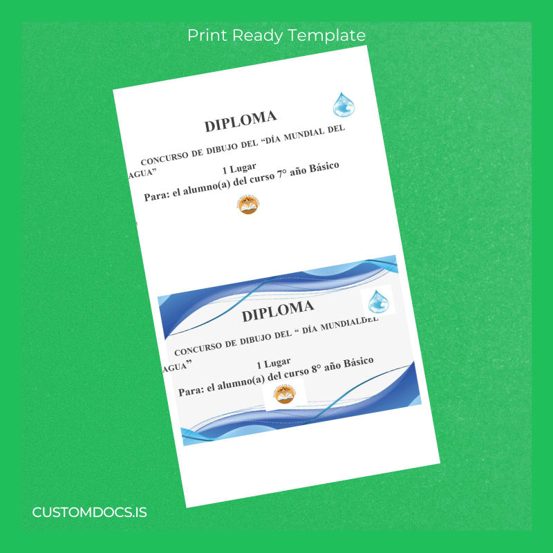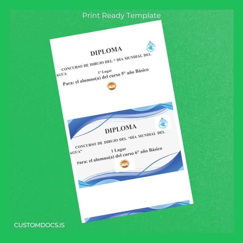 Instant Editable Diploma for Your Water Day Drawing Contest Needs
