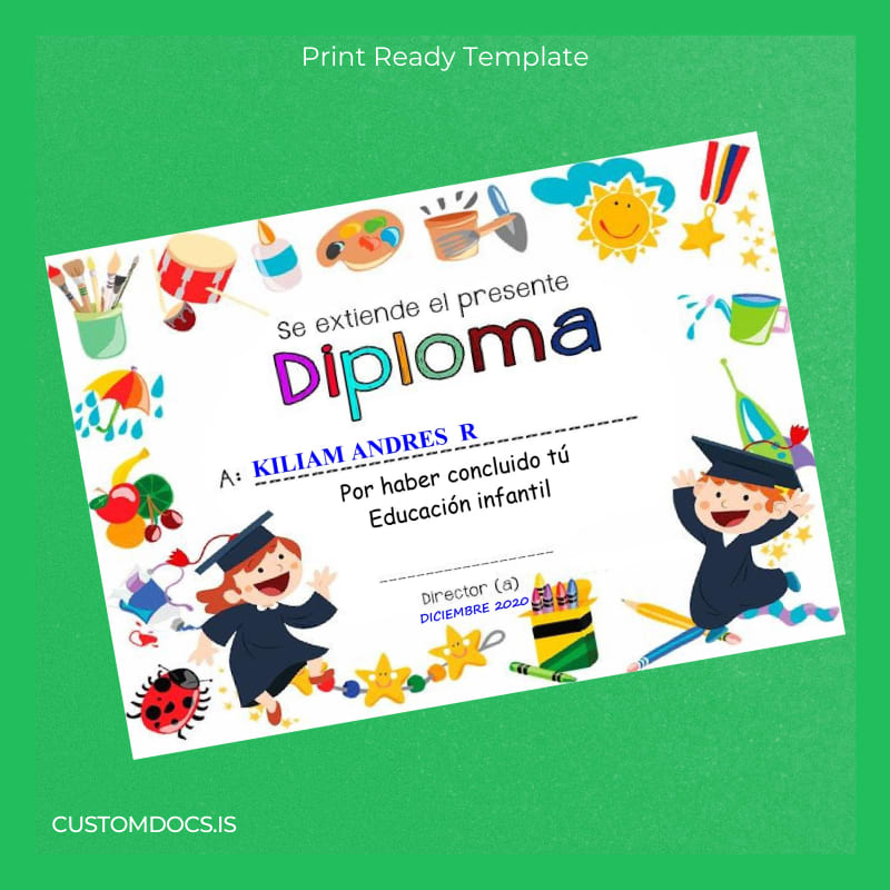 Instant Editable Spain Diploma Template for Early Childhood Education