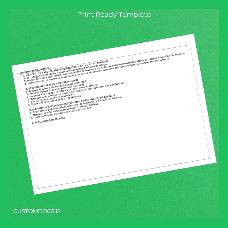 - Purpose-built novelty diploma design that aligns with official standards for occupational risk prevention certification.