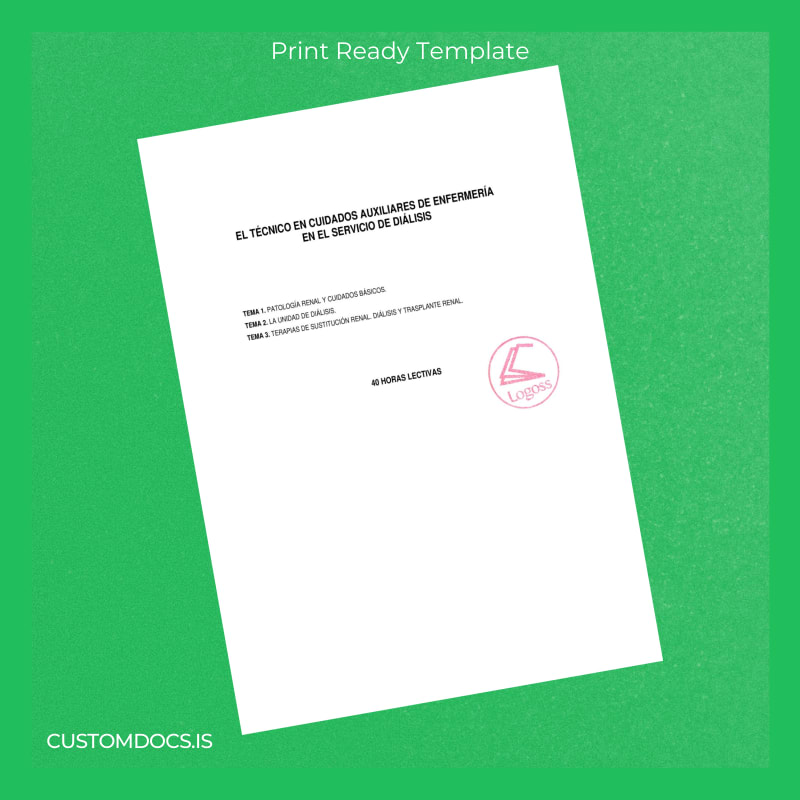 Eliminate the headache of bureaucratic hurdles with the Spain Logoss Educativa II, S.L. Technician in Auxiliary Nursing Care Diploma Template – Word & PDF. This comprehensive and fully customizable diploma design enables professionals and organizations to recreate and update their Auxiliary Nursing Care certification quickly and efficiently. As part of our extensive customizable degree template collection, this template offers unmatched convenience when accuracy and professional presentation are essential.
